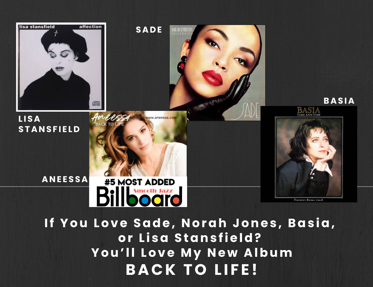 perfect for fans of Sade, Norah Jones, Basia, and Lisa Stansfield. With intimate vocals, lush arrangements, and timeless melodies, Aneessa delivers a warm, sophisticated sound that fits effortlessly into jazz, AC, and soul radio formats.